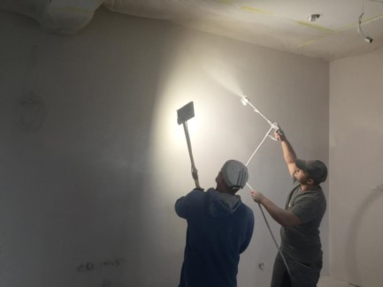 Workmen spray painting the ground floor